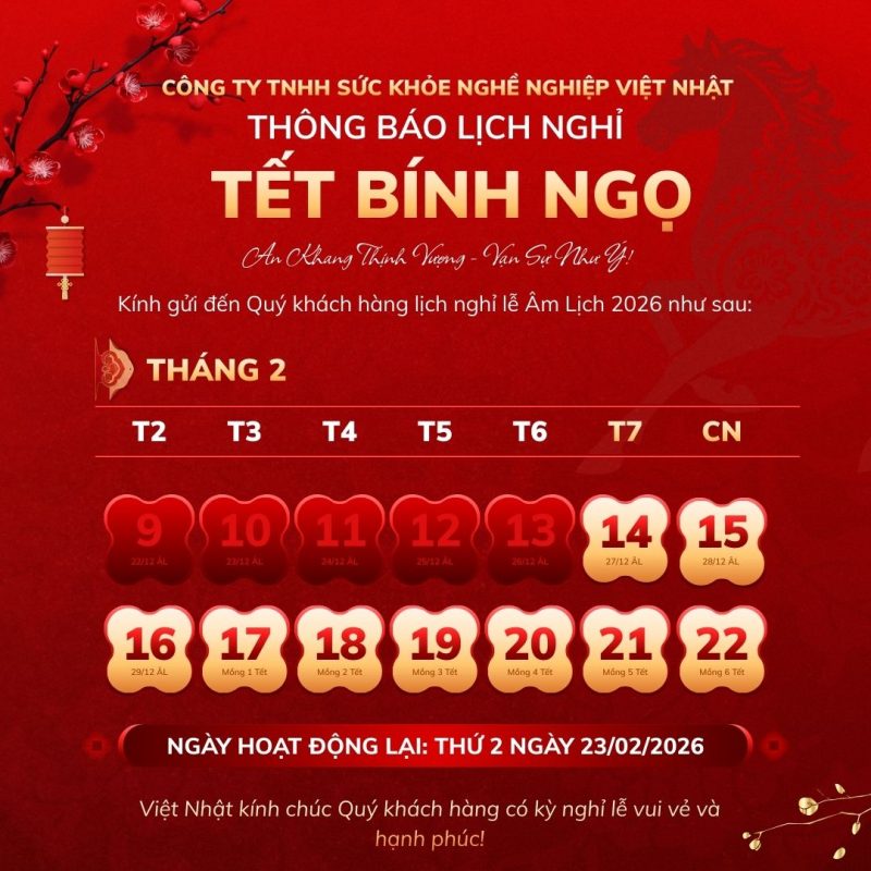 VIỆT NHẬT thông báo lịch nghỉ Tết Nguyên Đán 2026 Quý Khách Hàng, Quý Đối Tác và toàn thể CBNV